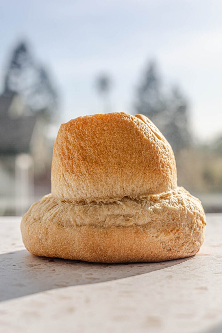 - 2nd Proof. Place in a warm area again and proof for 30-45 minutes until you see the dough popping out of the bottom like this.
