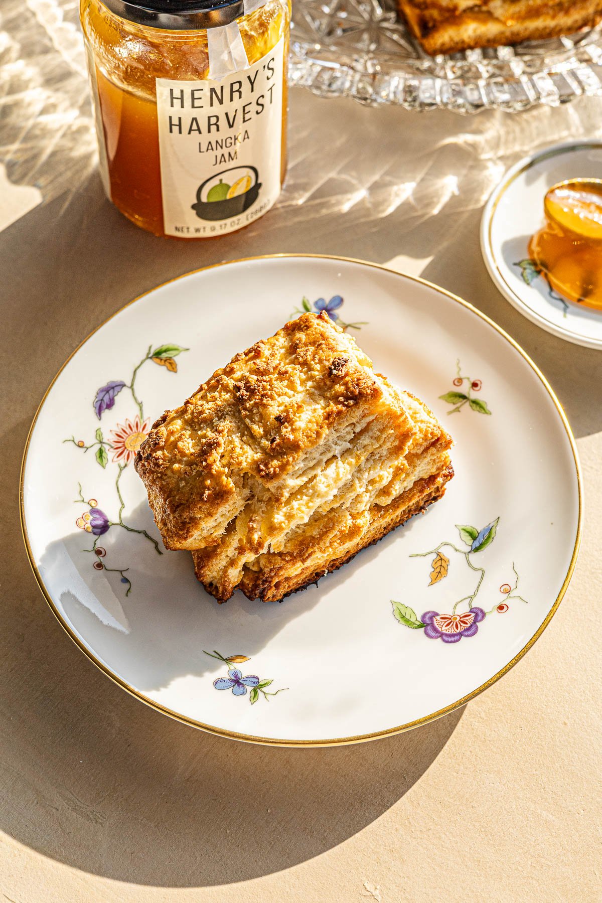 Layered Langka Scone on fine china.