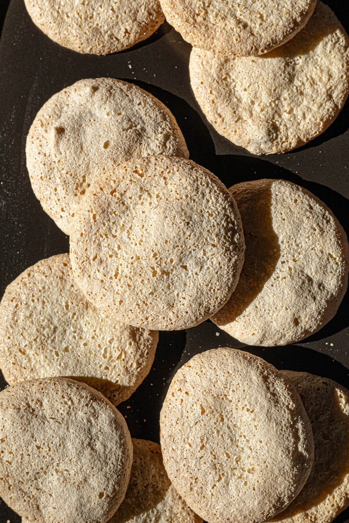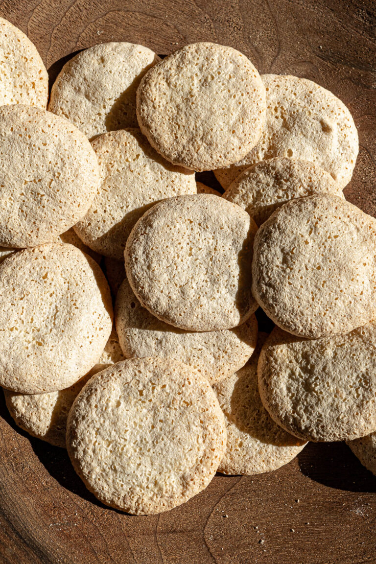 The Pacencia Cookie recipe is made with whipped egg whites, sugar, flour and a little bit of vanilla. It truly tastes like a crispy marshmallow.