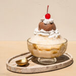 Top with a scoop of chocolate ice cream. Squirt some whipped cream around the base of the chocolate ice cream and on the top. Finally finish your Halo Halo Sundae with a cherry on top for a pop of color.