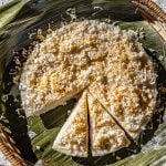 Once the puto is steamed take it out of the container and put it on a platter lined with banana leaves.
