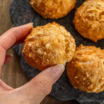 To bake use a 1 tablespoon ice cream scooper to portion out the Queso De Bola Cheese Puffs on to a lined baking sheet.