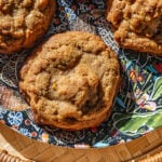 Bake the Turon Cookie Dough: Using a ½ cup measuring cup, scoop the Turon Cookie dough balls on the prepared baking sheet. Only put 4 scoops on at a time as they are big cookies and spread a bit. Bake in the oven for 9-10 minutes. Just until the outside of the cookie is nice and golden and looks crisp. Cool the cookies: Take out of the oven and leave to cool on the baking sheet for 5 minutes. After 5 minutes transfer the cookies to a wire rack to fully cool down.