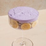 Now it's time to build your Ube Banana Pudding! I decided to go with individual servings, but you can can use a 8x8 tray to make the pudding or a large truffle bowl. Start by lining the bottom with a Marie Biscuit. Then add on the sliced bananas. Be creative as you like with the placement. Next scoop in the first layer of Ube Pudding. I would say about 2 heaping tablespoons is good. Start your second layer with the Marie Biscuits. Layer the bananas on top and then more pudding.