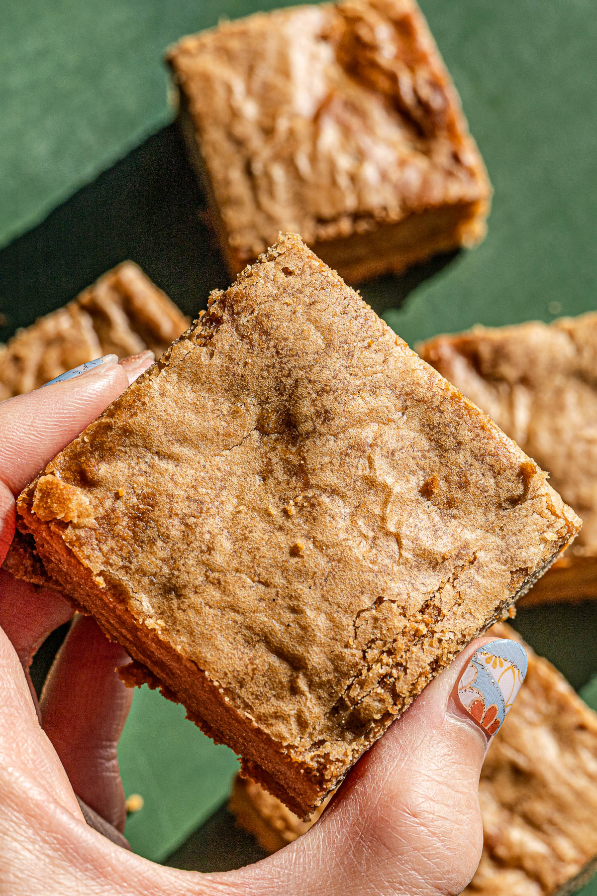 These Yema Cookie Bars are made with toasted flour just like a polvoron! Then small pieces of yema candy is mixed into a cookie batter that has been flavored with calamansi rind. You can really taste the depth of flavor when you bite into them.